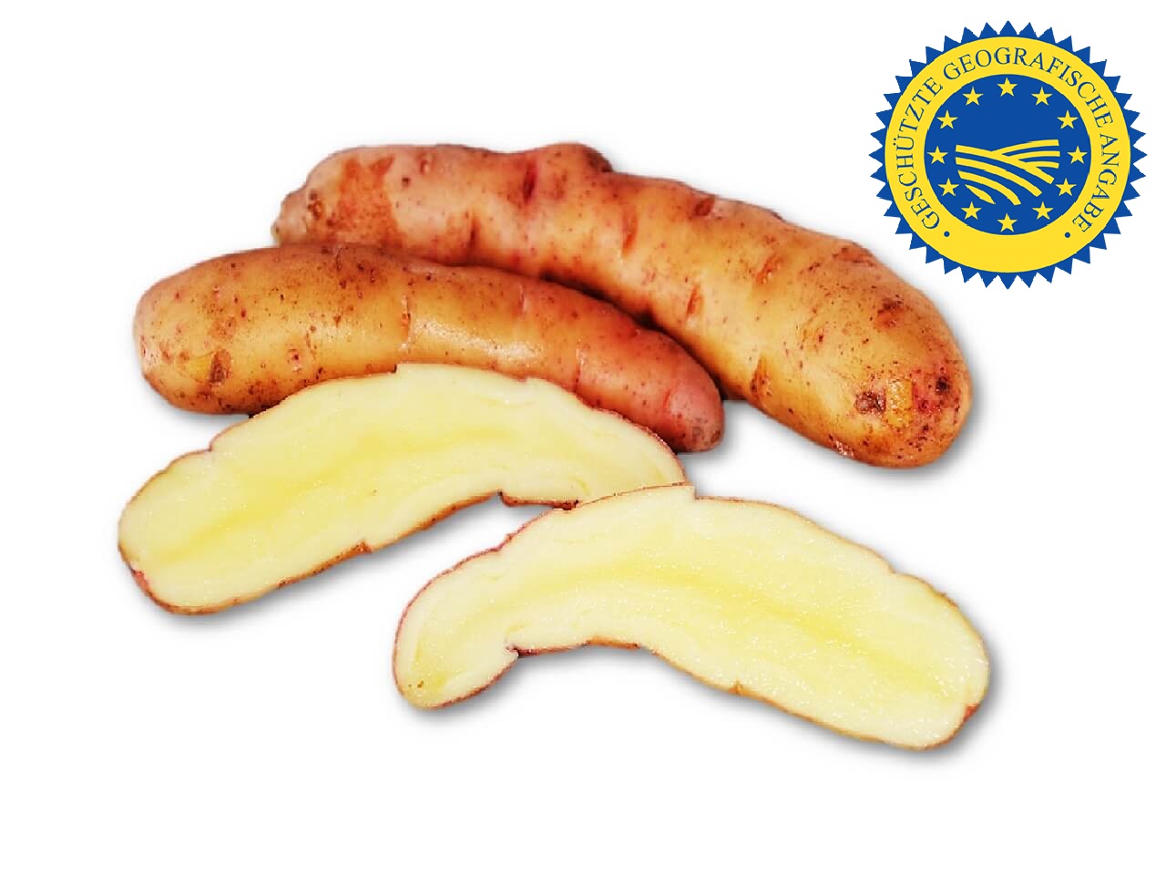 - Kartoffel: Fingerlange Kartoffel mit tiefliegenden Augen